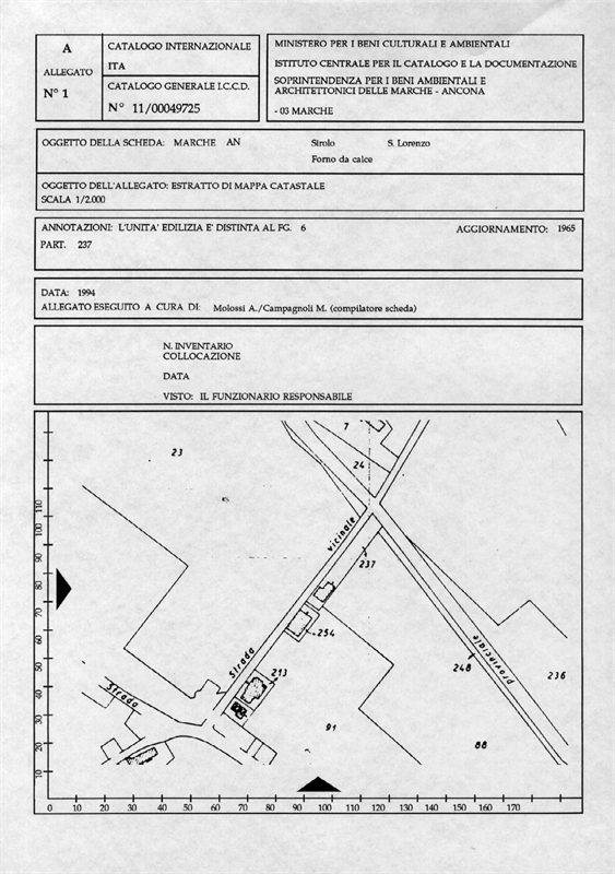 intero bene:la costruzione potrebbe essere anche medievale, essendo il forno da calce legato alle attività estrattive delle cave, già note nel luogo in periodo medievale. Tuttavia l'unico documento in cui si accenna alla cottura della calce sono gli stanti di Sirolo del 1465