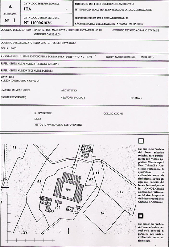 intero bene:Nel 1869 l`Amministrazione provinciale vi creò una Colonia agricola avente lo scopo di dare istruzione pratica ai contadini con criteri tecnici razionali. Nel 1881 la Colonia agricola fu trasformata in Scuola Pratica di Agricoltura che, nel 1923, divenne Regia Scuola Agraria media ed infine, nel 1933, Istituto Tecnico Agrario statale `Giuseppe Garibaldi`.
