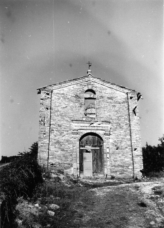 La pianta, ad aula, è di forma rettangolare, con arco trionfale, e abside pure rettangolare. La muratura portante è in laterizio faccia a vista, ritmata da paraste. Quel che resta della copertura, crollata quasi del tutto, lascia ipotizzare un tetto a due falde con manto in coppi. All'interno la copertura, vista la conformazione dell'arco trionfale, era probabilmente piana; le pareti dell'aula risultano intonacate e scandite da lesene e un unico giro di trabeazione. In fondo a destra, anch'esso semicrollato, un campanile a base quadrata, con cella campanaria ad archi, un tamburo e una copertura a cupola. La facciata, a capanna, è incorniciata da due paraste d'angolo e presenta, in asse, un portale fortemente ornato con piastrelle e trabeazione e una finestra architravata con arco di scarico anch'esso bucato.