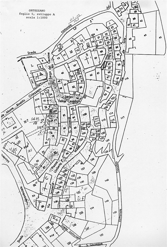 intero bene:`...sul lato est con lo sviluppo di un borgo attorno alla Chiesa di S. Girolamo, fortificato nel sec. XIV, di cui restano tratti di mura a cui sono addossati edifici a schiera, una torre ghibellina e la Porta da Sole...`