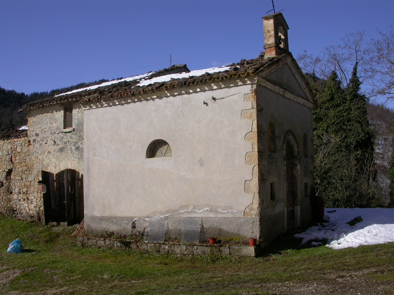 intero bene:Dagli elementi stilistici, costituiti da semplici finestre architravate, dal frontone di forma classica, dalle nicchie sul prospetto principale, dal portale architravato con lunetta, la cappella è databile intorno all'inizio del XIX secolo.