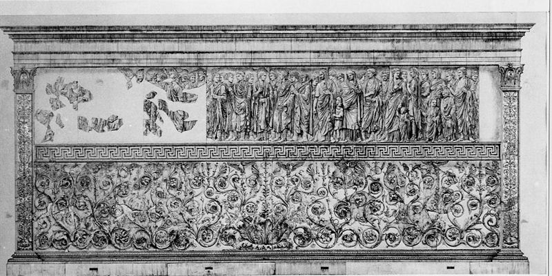 Il disegno è parte integrante del rilievo completo delle facciate della Ara Pacis Augustae.