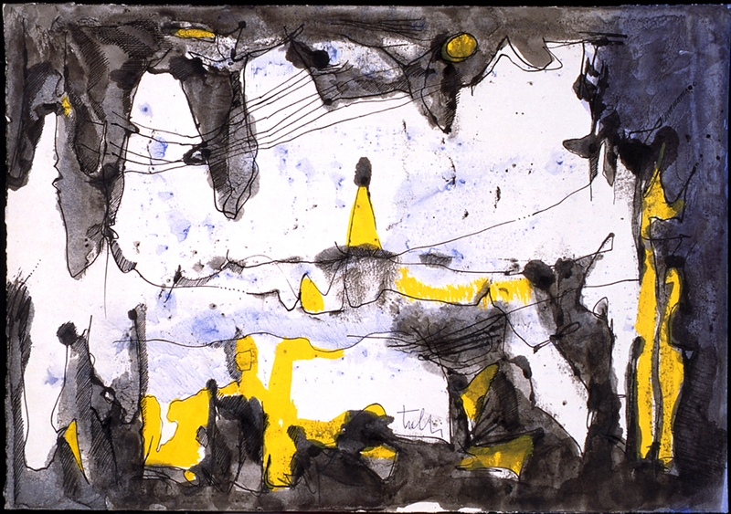 Il soggetto, sebbene non identificabile, si ipira al mare, un tema molto caro e ricorrente nella produzione artistica di Tulli, le forme geometriche sono scandite dal colore secondo un'inerpretazione astratta. Tale connotazione è stata denominata dalla critica `astrazione lirica`. Nell'inventario della Galleria accanto al titolo originale ` Crociera` è stato aggiunto il sottotitolo `Stalattiti e Stalagmiti`.