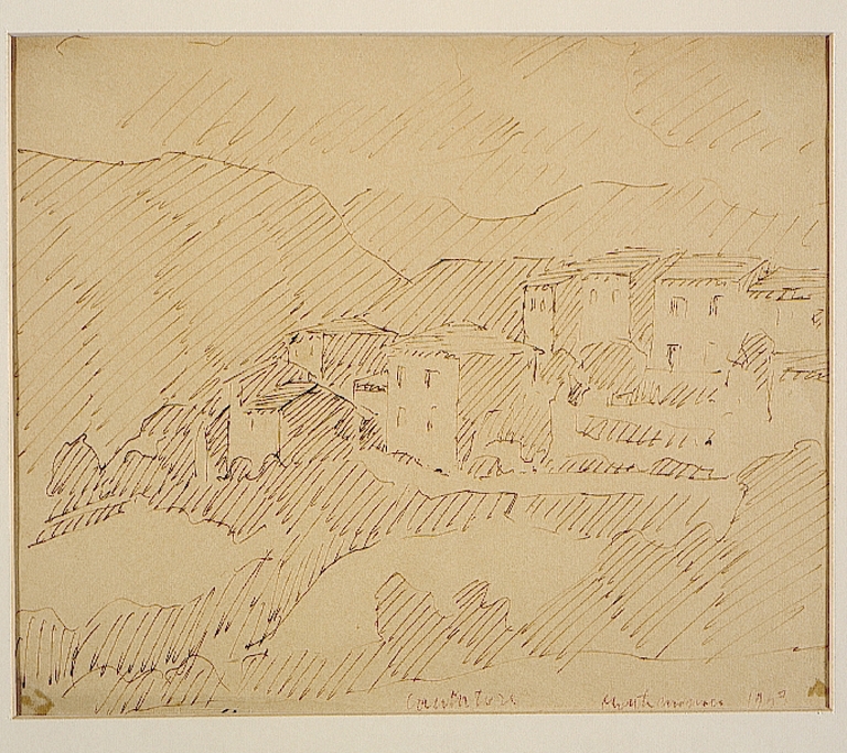 Cantatore era solito trascorrerre nel secondo dopoguerra le sue vacanze estive a Civitanova dove ebbe modo di conoscere Moretti. Il paesaggio marchigiano ritorna così di frequente nelle opere del maestro come accade per questo disegno. Il disegno fu donato a Moretti dall'artista. L'opera compare nell'atto notarile di donazione allegato alla tesi di specializzazione in discipline storico artistiche della Dott.ssa Roberta Ruggeri. La tesi, redatta nel 1984, a conclusione degli studi della Scuola di Perfezionamento in Storia dell'Arte Medievale e Moderna dell'Università degli studi di Urbino, è stata poi oggetto di pubblicazione quale catalogo della pinacoteca Moretti. L'atto notarile figura nello studio originario e non nella pubblicazione successiva.