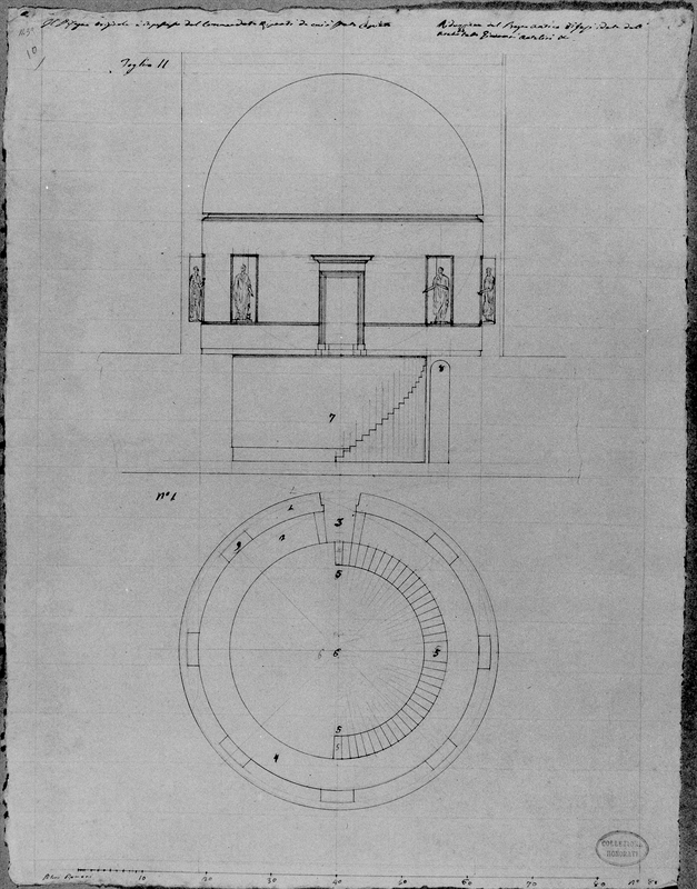 Honorati Gaudenzio; Honorati Gaudenzio, pianta e alzato di edificio termale (disegno)