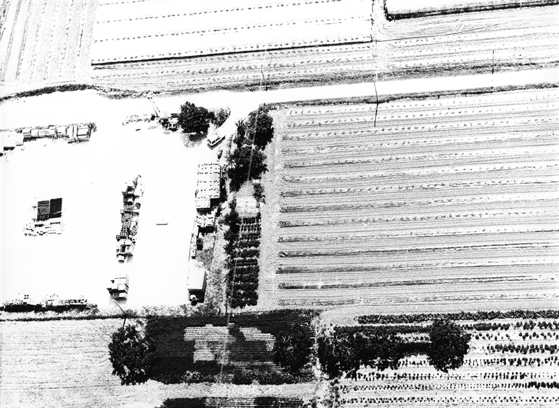Paesaggio aereo - campi coltivati - strada - alberi - orti