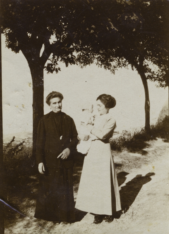 Modesta Ambrosi con la figlia Tita Valori che tiene in braccio il nipote Enrico Craia