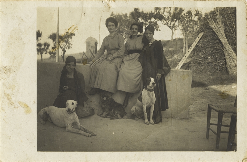 Ritratti femminili di quattro donne e tre cani. E' riconoscibile Tita Valori la seconda da sinistra