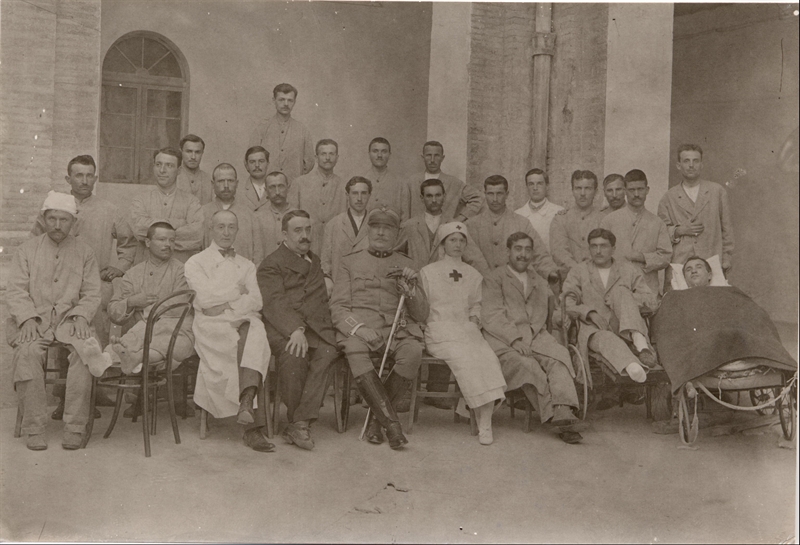 Macerata - Ospedale Militare - Gruppo di soldati degenti e personale medico
