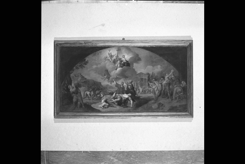 Rapporto opera finale/originale: bozzetto - opera finale/originale: Lazzarini Giannandrea, dipinto - Martirio dei Santi osimani, 1767, AN/ Osimo/ Duomo