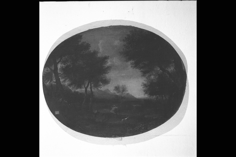 paesaggio con scena di caccia