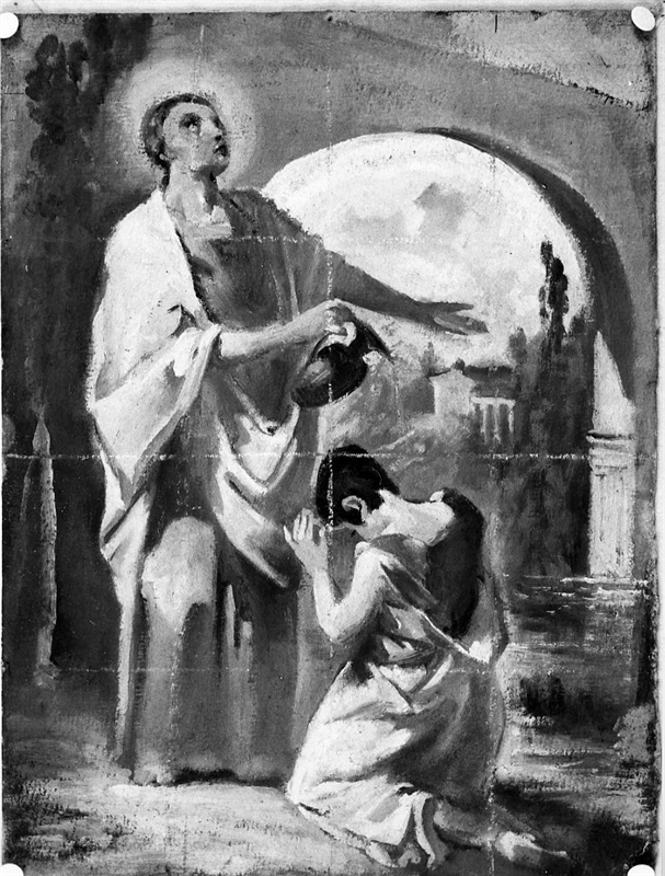 Gabrielli Giulio (1832/ 1910) , Sant'Emidio battezza Polisia