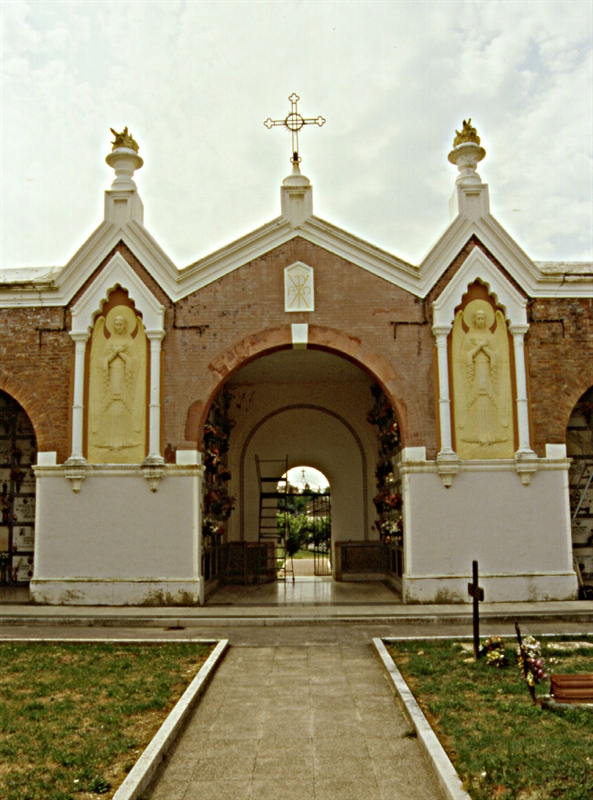 Serra de' Conti (AN); Cimitero Comunalemura di cinta, sopra l'ingresso al cimitero. via Provvidenza, 2/A