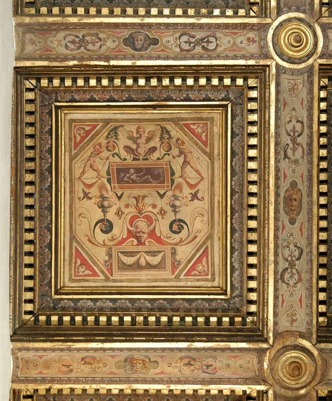 Senigallia (AN); Palazzo del Ducaprimo piano, Sala del Trono, soffitto, quarta fila, primo cassettone a sinistra. p.zza del Duca, 9