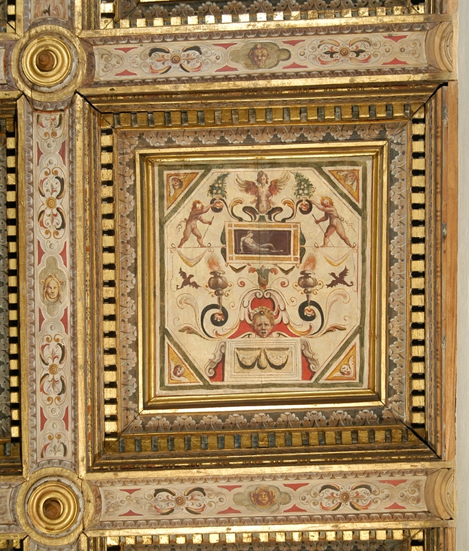 Senigallia (AN); Palazzo del Ducaprimo piano, Sala del Trono, soffitto, quarta fila, settimo cassettone. p.zza del Duca, 9