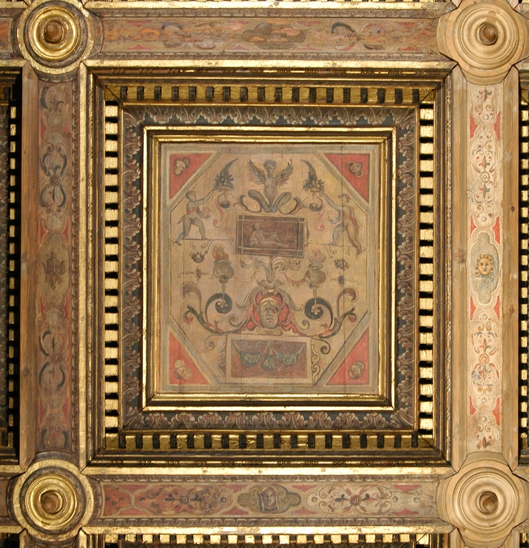 Senigallia (AN); Palazzo del Ducaprimo piano, Sala del Trono, soffitto, sesta fila, terzo cassettone. p.zza del Duca, 9