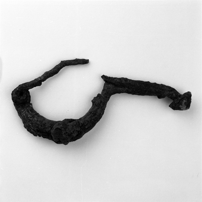 Arco pieno e staffa con sezione a `iota` terminante con un grosso bottone conico lievemente rialzato
