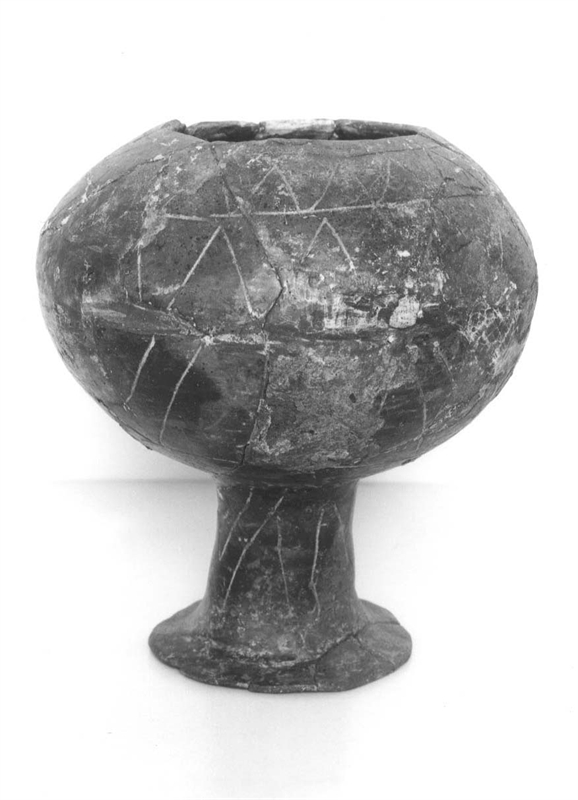 image; coppa globulare su alto piede cavo; ceramica di impasto