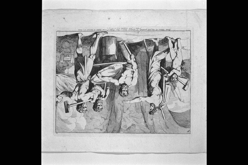 Pinelli Bartolomeo; Pinelli Bartolomeo, Vulcano ordina ai Ciclopi di forgiare le armi per Enea (stampa, elemento d'insieme)