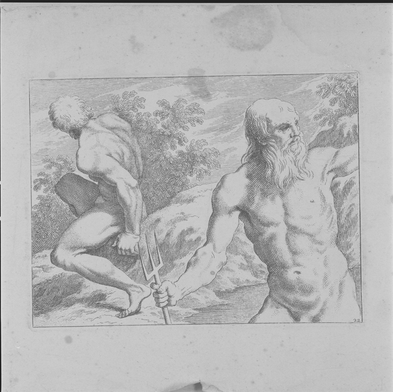 Nettuno; figura maschile; (Nettuno) tridente; alberi