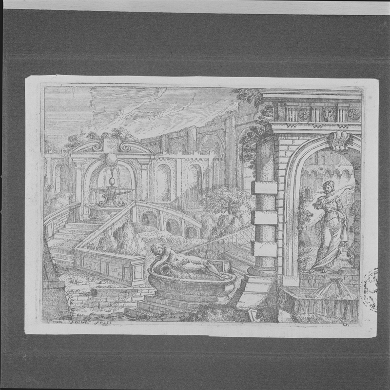 veduta prospettica di architetture e rovine