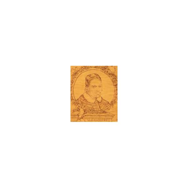 Il disegno rappresenta il ritratto di Pietro Ottoboni, eletto al soglio pontificio con il nome di Alessandro VIII il 6 ottobre 1689. La sua effigie è inserita in una corona di alloro circolare sostenuta da un putto e sormontata dallo stemma di famiglia. La composizione poggia su un basamento lapideo su cui sono riportati il suo nome, le sue origini venete, la durata del suo pontificato, le date di elezione e di morte e il tempo in cui la sede papale è rimasta vacante dopo la sua morte.