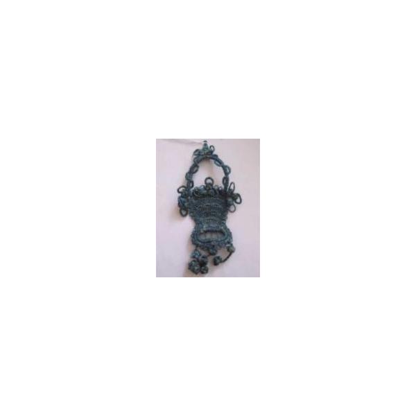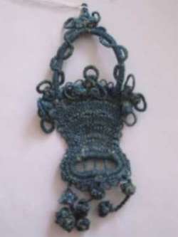 3 pezzi. Motivo: CESTINO DI VIMINI INTRECCIATO CON MANICO Colore: INDACO Punti usati: MERLETTO AD AGO Tipo di Fondo: FILO DI COTONE, TINTURA MANUALE.