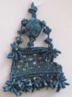 2 pezzi. Motivo: VASO SU BASE A TRAPEZIO Colore: BLU Punti usati: MERLETTO AD AGO Tipo di Fondo: FILO DI COTONE BLU. TINTURA MANUALE