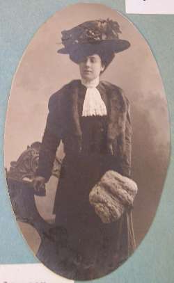 Ritratto di Beatrice di Carpegna Gabrielli in Ranieri, moglie di Emanuele Ranieri dal 1916; foto color seppia, ritagliata in ovale.