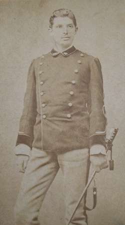 Ritratto a figura intera di Geri de Pazzi (1858-1932), marito di Maria Angela Orfini dal 1890; foto color seppia.