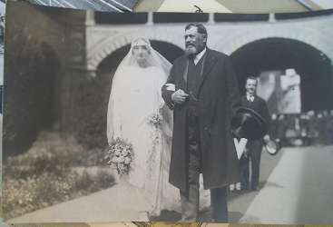 Ritratto di Geri de Pazzi (1858-1932) marito di Maria Angela Orfini dal 1890, insieme alla figlia Marianna de Pazzi; foto in bianco e nero. Sul retro vi è la scritta "Matrimonio Marianna de Pazzi con N. Roccagiovane, 1923 - Geri de Pazzi e Marianna".