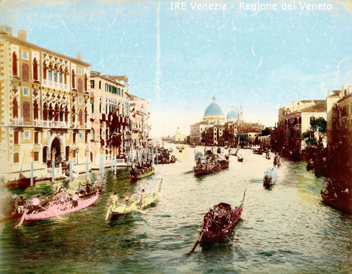 Venezia - Vita veneziana e lagunare - Scene e costumi - Canal Grande dall'Accademia verso la Salute - Regata Storica: corteo di imbarcazioni