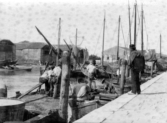 Vita veneziana e lagunare - Chioggia - Fondamenta Lombardo - Passanti - Imbarcazioni ormeggiate
