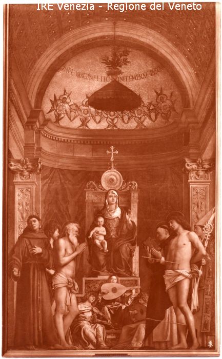 Bellini, Giovanni, Madonna col Bambino, angeli musicanti, S. Francesco, S. Giovanni Battista, S. Giobbe, S. Domenico, S. Sebastiano, S. Ludovico da Tolosa, "Pala di S. Giobbe"