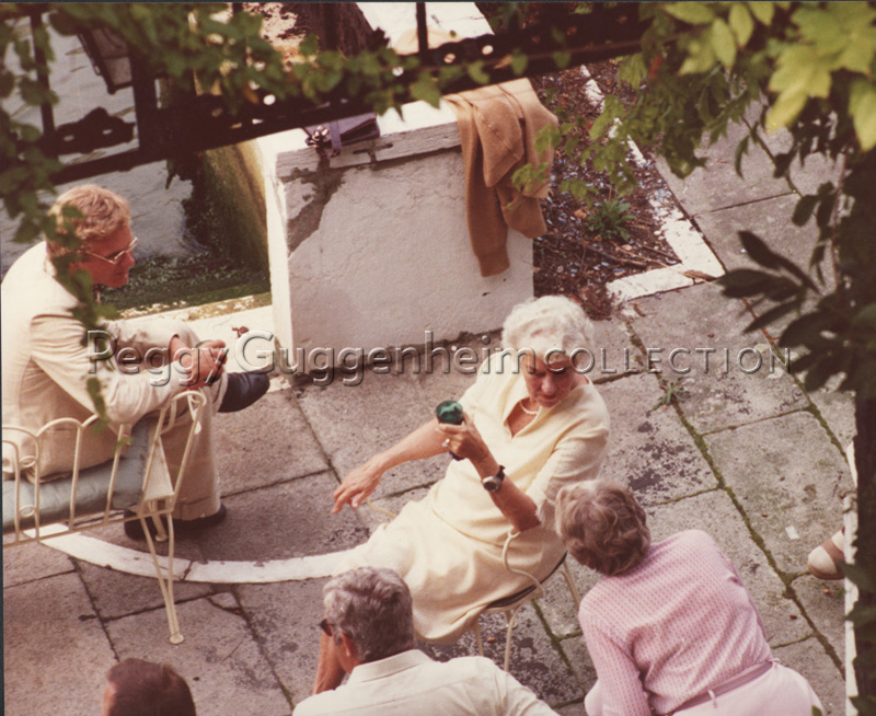 Anonimo, Peggy Guggenheim con Giovanni Carandente e Vittorio Fiorazzo nella terrazza di Palazzo Venier dei Leoni, anni '70