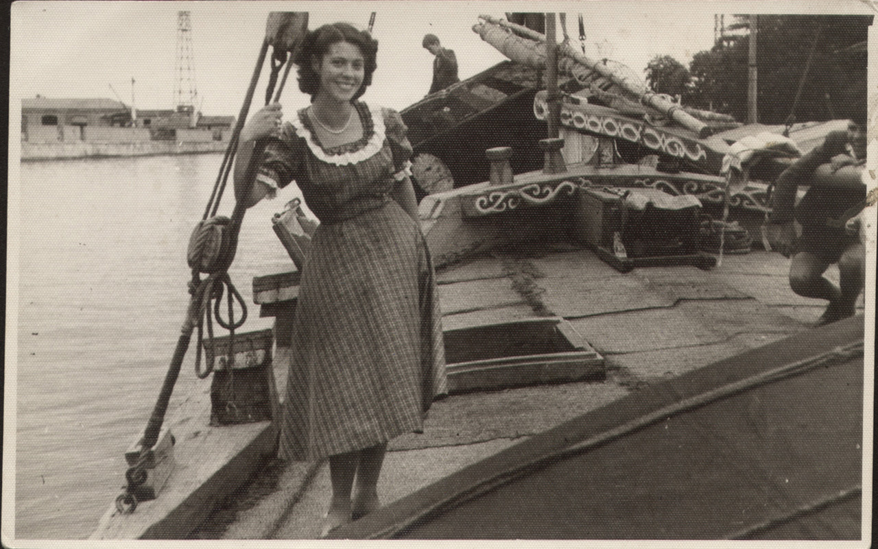Foto ricordo della figlia del barcaro Adelelmo Rossi a bordo del burcio Maria II.