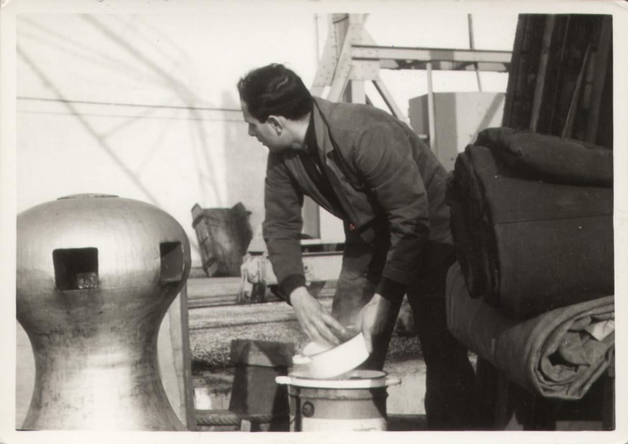 Foto ricordo del mozzo Giancarlo Cappellozza mentre lava i piatti.