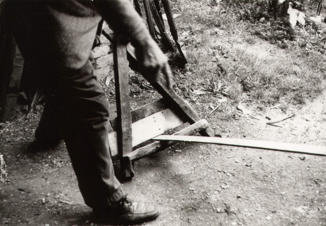 Piegatura di un'asse nel cantiere Scarpa di Chioggia.