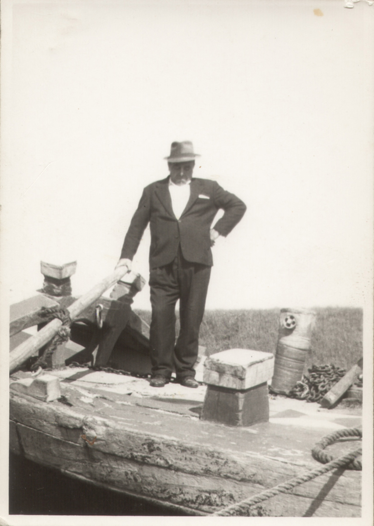Foto ricordo del barcaro Silvestro Fusaro a bordo del suo burcio a Battaglia Terme.
