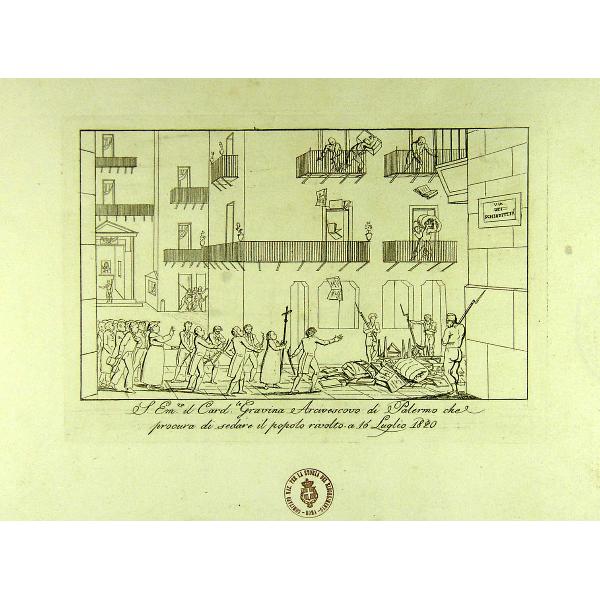 S. Eminenza il Cardinale Gravina, Arcivescovo di Palermo che procura di sedare il popolo rivolto, 16 Luglio 1820