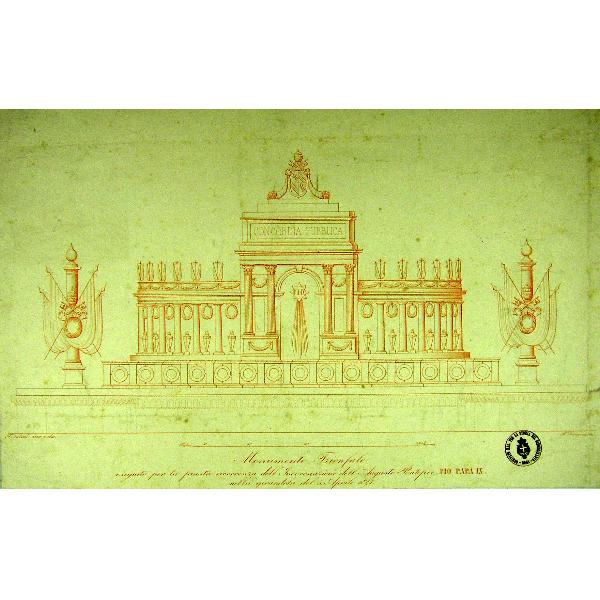 Monumento trionfale eseguito per la fausta ricorrenza dell'incoronazione dell' Augusto Pontefice Pio IX, nella girandola del 5 Aprile 1847