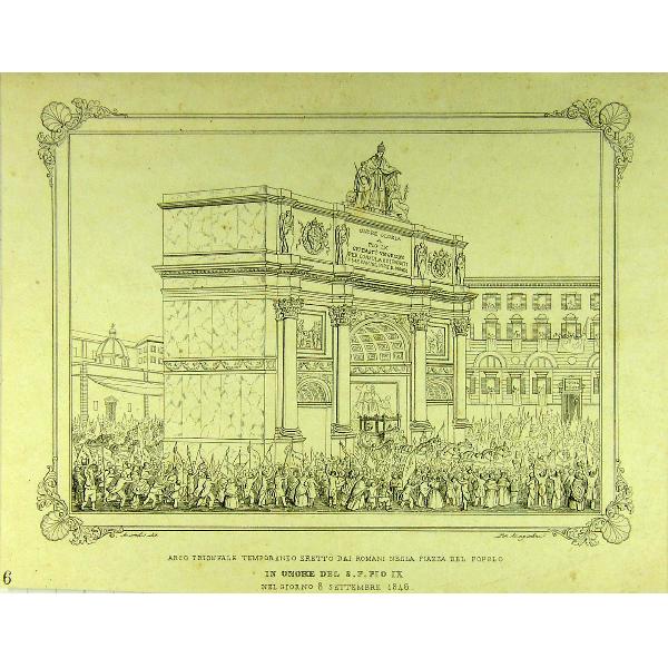 Arco trionfale temporario eretto dai romani nella Piazza del Popolo in onore del S.P. Pio IX nel giorno 8 Settembre 1846