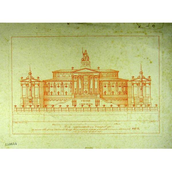 Mole rappresentante un campidoglio, in memoria della gloriosa istituzione del Municipio Romano eseguita per la fausta ricorrenza dell'incoronazione di Pio IX il 24 Aprile 1848