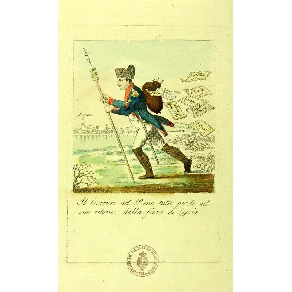 Il corriere del Reno tutto perde nel suo ritorno dalla fiera di Lipsia Acquerellata a mano