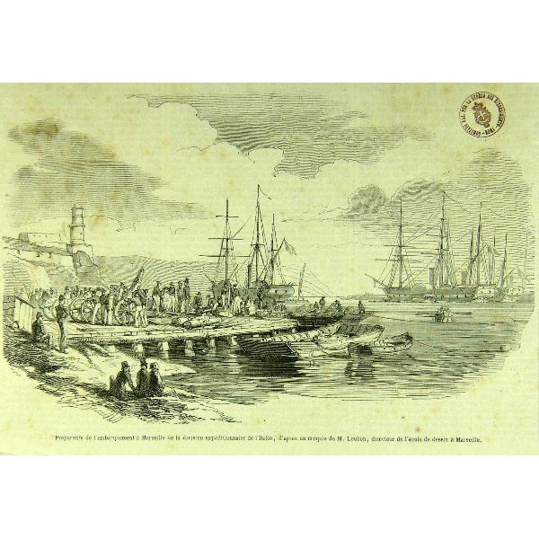 Preparatifs de l'embarquement à Marseille de la division expeditionaire de l'Italie