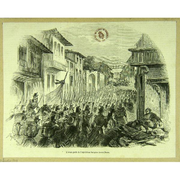 L'avant garde de l'expedition francaise devant Rome Ritaglio di giornale. Con annotazioni manoscritte
