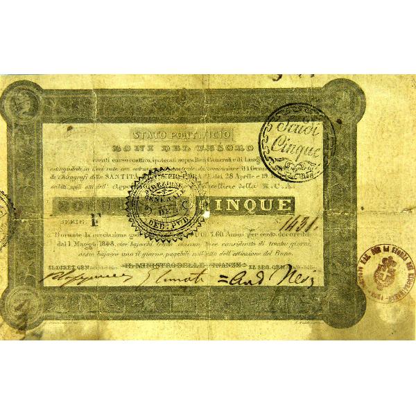 Buoni del Tesoro in Surrogazione. Stato Pontificio