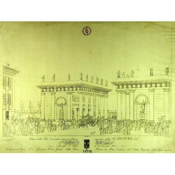 Veduta della Porta Orientale eretta pel solenne ingresso delle LL. MM. II. RR. AA. Francesco I e Maria Luisa, nella città di Milano