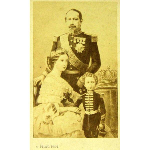 Fotografia ritoccata a mano: mentre il volto dell'imperatore e quello del figlio sono tratte da altre foto, tutto il resto è disegnato.