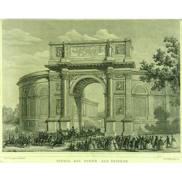 Ferrario Carlo; Ferrario Carlo, Esterno del circo, veduta del circo (disegno, opera isolata)